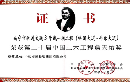 • 斬獲雙料大獎!中鐵交通南寧軌道交通3號線項(xiàng)目再獲詹天佑獎